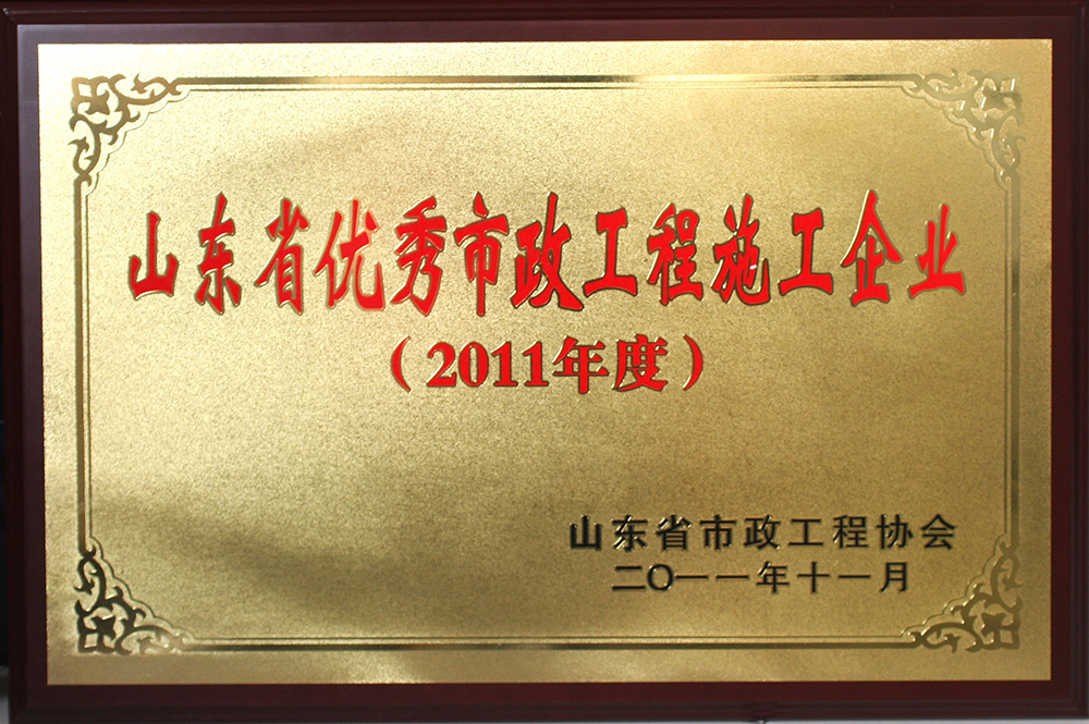 被山東省市政工程協(xié)會(huì)評(píng)為“2011年度山東省優(yōu)秀市政工程施工企業(yè)”