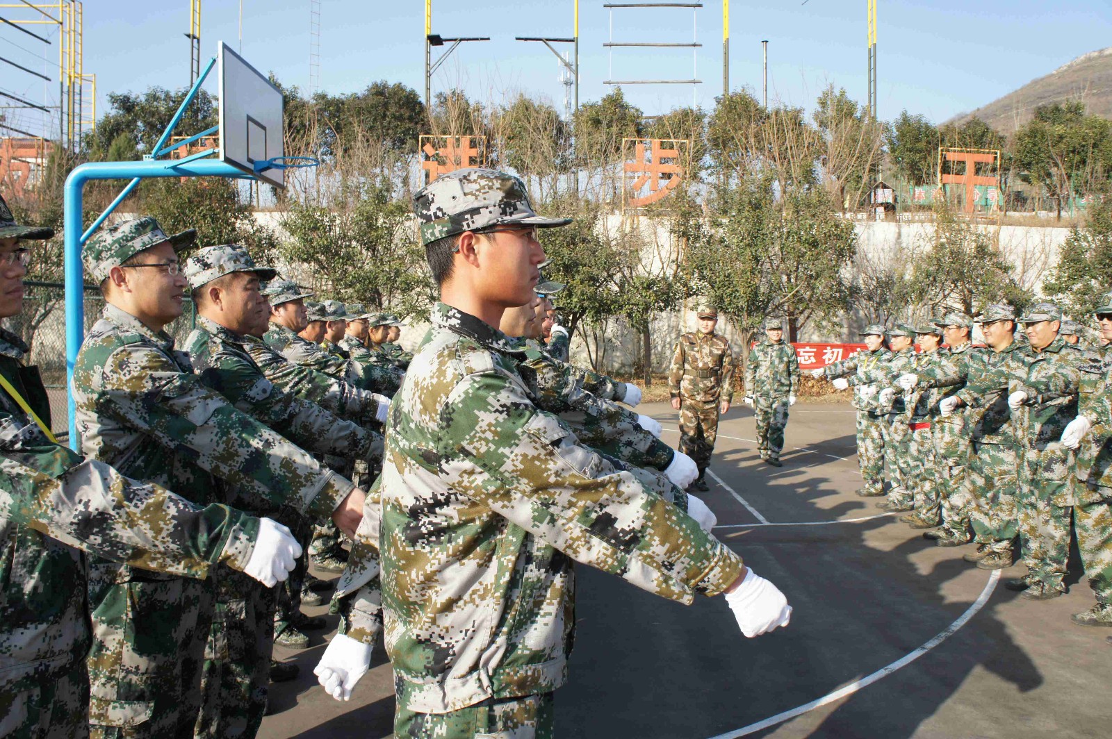 為保證公司各項工作不受影響,本次軍事拓展訓練,仍然延續(xù)上一季的模式,將全體人員分為兩個批次組織訓練(第一批:12月5日-9日;第二批:12月12日-16日)。目前,參加第一批次的全體人員,在錢繼政副總經(jīng)理的帶領(lǐng)下已于12月5日抵達訓練營組織訓練。經(jīng)過5日上午的分隊組合,參訓的全部93人分別組成了英雄班、星火班、長征班和戰(zhàn)狼班共四個分隊。同時,英雄和星火兩隊組成了猛虎連,長征和戰(zhàn)狼隊組成了蒼狼連。在接下來的5天訓練中,上述團隊將接受包括隊列、轉(zhuǎn)法等內(nèi)容在內(nèi)的軍事訓練和包括野外拉練項目在內(nèi)的拓展訓練。