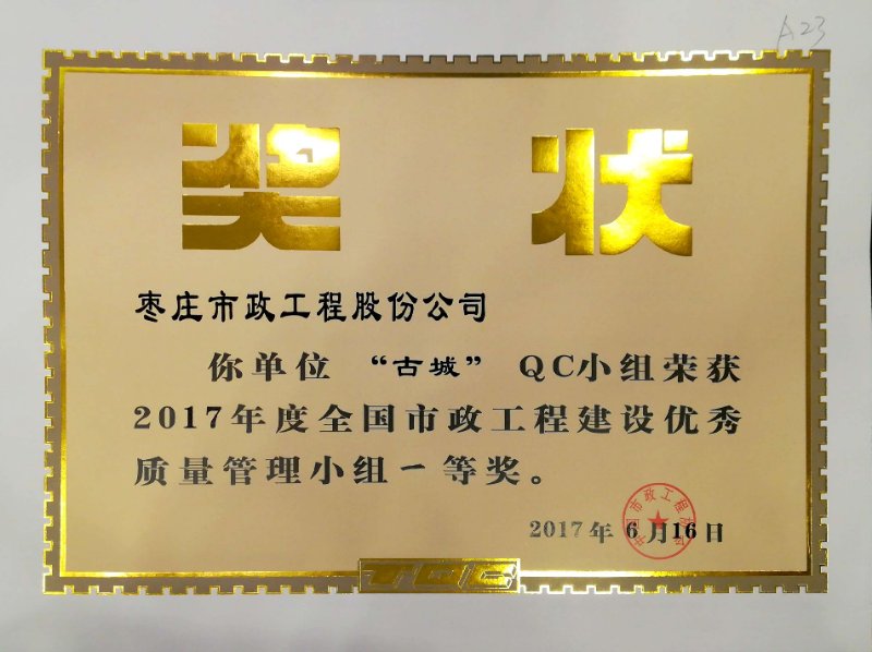 6月21日,2017年全國市政工程建設(shè)質(zhì)量管理小組成果發(fā)布會在四川成都召開。此次參加現(xiàn)場發(fā)布的共有289項。我公司 “創(chuàng)新手工雕琢式欄桿施工工藝”(聚力)QC小組和“研發(fā)直埋管道內(nèi)電纜防盜的新型施工工藝”(古城)QC小組,同時榮獲2017年度全國市政工程建設(shè)優(yōu)秀質(zhì)量管理小組一等獎。是我公司開展QC小組活動以來,取得成績最好的一次。