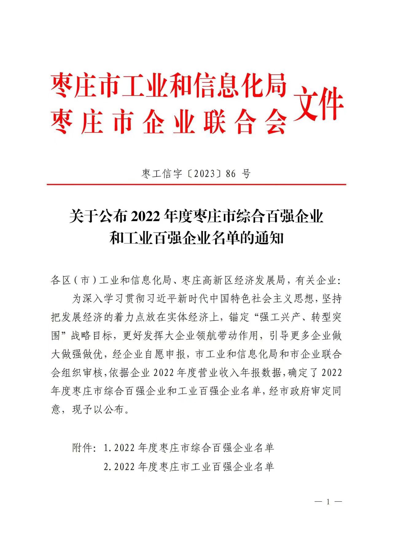 會議公布了“2022年度棗莊市綜合百強(qiáng)企業(yè)和工業(yè)百強(qiáng)企業(yè)”名單。棗莊市政建設(shè)集團(tuán)獲評“棗莊市綜合百強(qiáng)企業(yè)”。